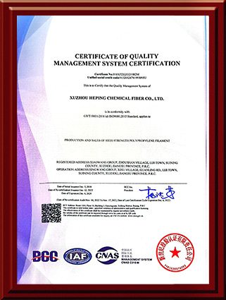 Xuzhou Heping Chemical Fiber Co., Ltd. was founded in 2006 and established the Jufeng brand in 2010. It has an annual production capacity of 12,000 tons and is a professional manufacturer of polypropylene high-strength industrial filaments, split film industrial filaments, monofilaments, ply yarns and various colored yarns/threads. It has domestic advanced production equipment, testing instruments, and production technology. The company has passed ISO9001 quality system certification. It is a high-tech enterprise in Jiangsu Province. Its products are sold well throughout the country and exported to Europe, Asia and other regions. After years of development, it has strong technical strength, perfect processing and manufacturing methods, rich management experience and reliable product quality assurance system. The next step will be to further enhance the product chain construction and management, strengthen new technologies, processes, and material application research and development, improve customer experience and satisfaction based on business optimization, improve industry-related processes through key business optimization, and combine big data and other technologies to achieve intelligent management, promote the overall system improvement, and always adhere to the people-oriented, quality first, independent innovation, continuous improvement, and technology-leading development policy.